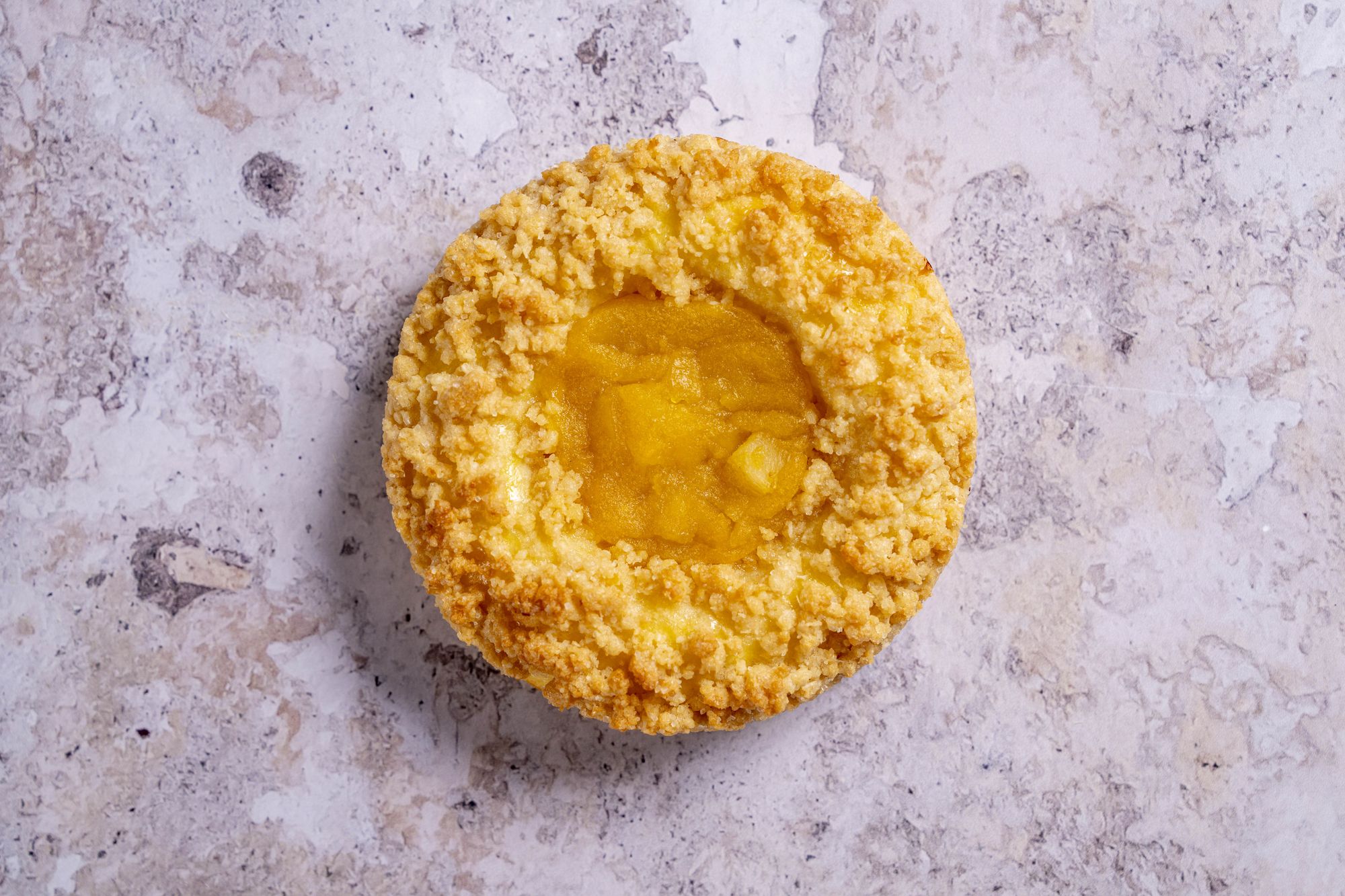 Brioche chocolat garnie d'un crémeux chocolat noir, d'un crumble cacao et d'un praliné à l'ancienne